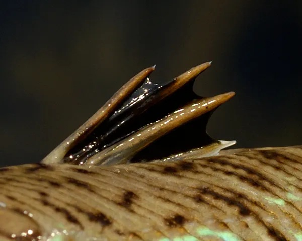 The dorsal fin of a weever. These spines contain a venom, and the sting can be very painful.